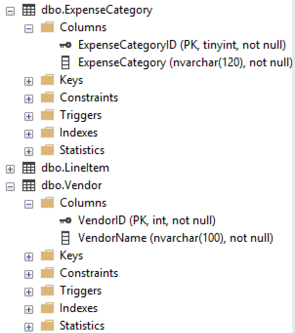 , so that might be our next stop. Or maybe VendorExpenseCategory