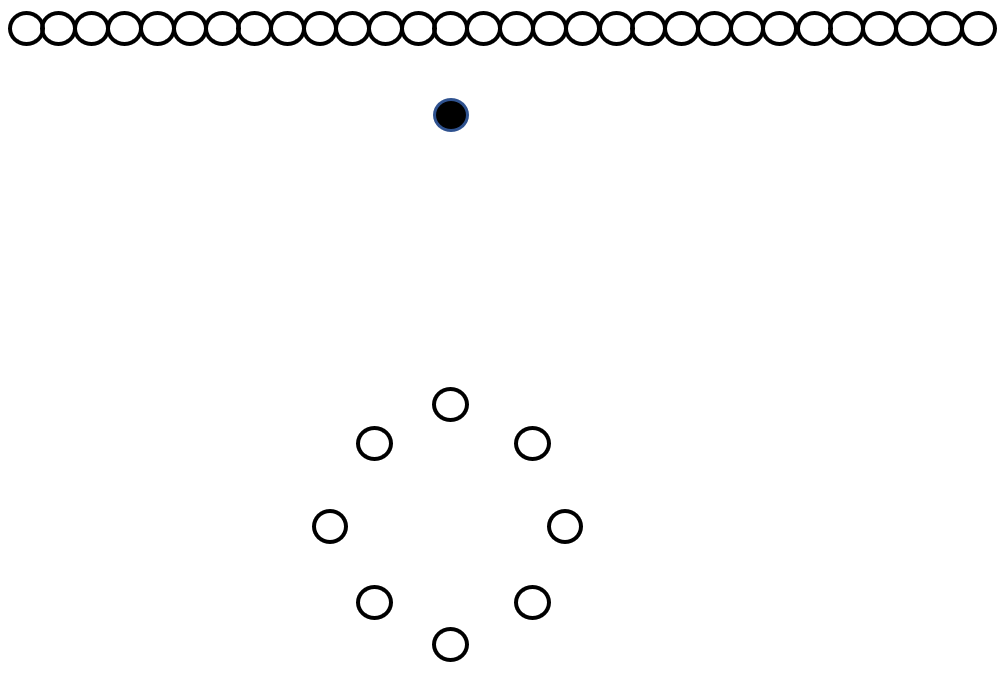 First, build a chain of length k, linking the current chain to to the next-nearest neighbor. Here, k = 6, covering a total of 7 nodes.